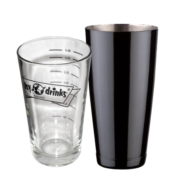 Boston Shaker, Edelstahlbecher schwarz und Glasaufsatz inklusive 5cl. Skala
