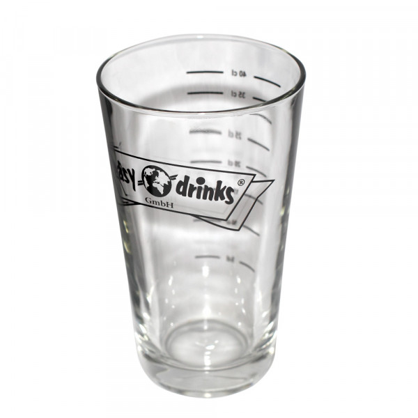 Boston Shaker Glasaufsatz, Oberteil aus Glas mit 5cl. Skala & easy drinks Logo